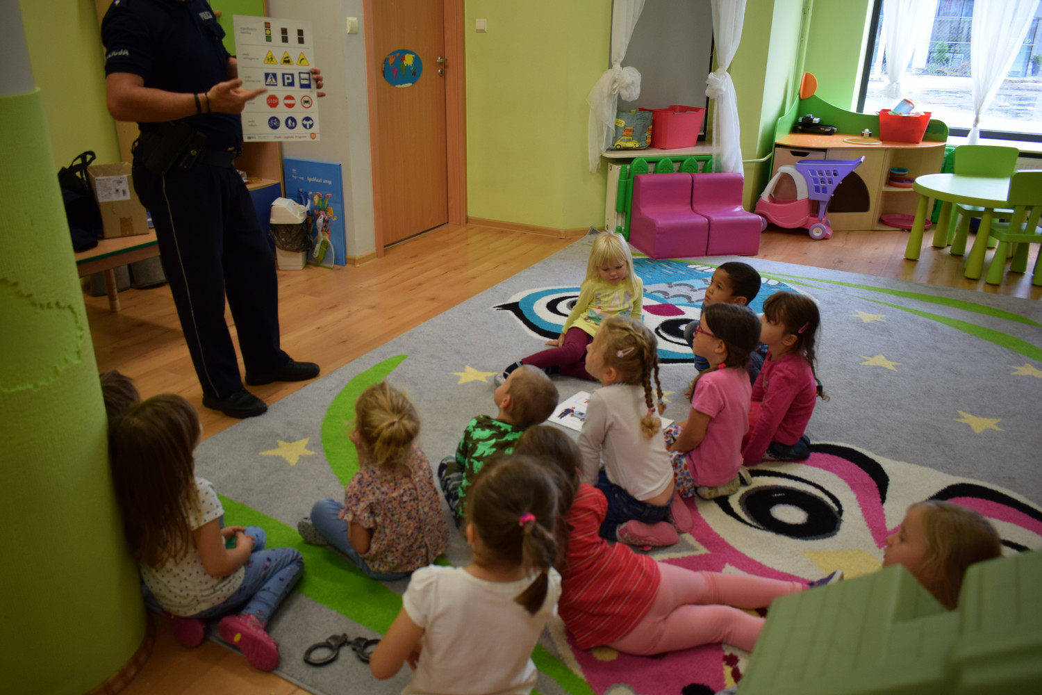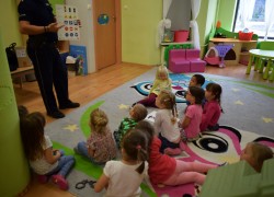 Pod­czas spo­tka­nia z panem poli­cjan­tem dzieci utrwa­liły zasady bez­piecz­nego korzy­sta­nia z dróg oraz miały okazję zadać pyta­nia doty­czące pracy eks­perta.