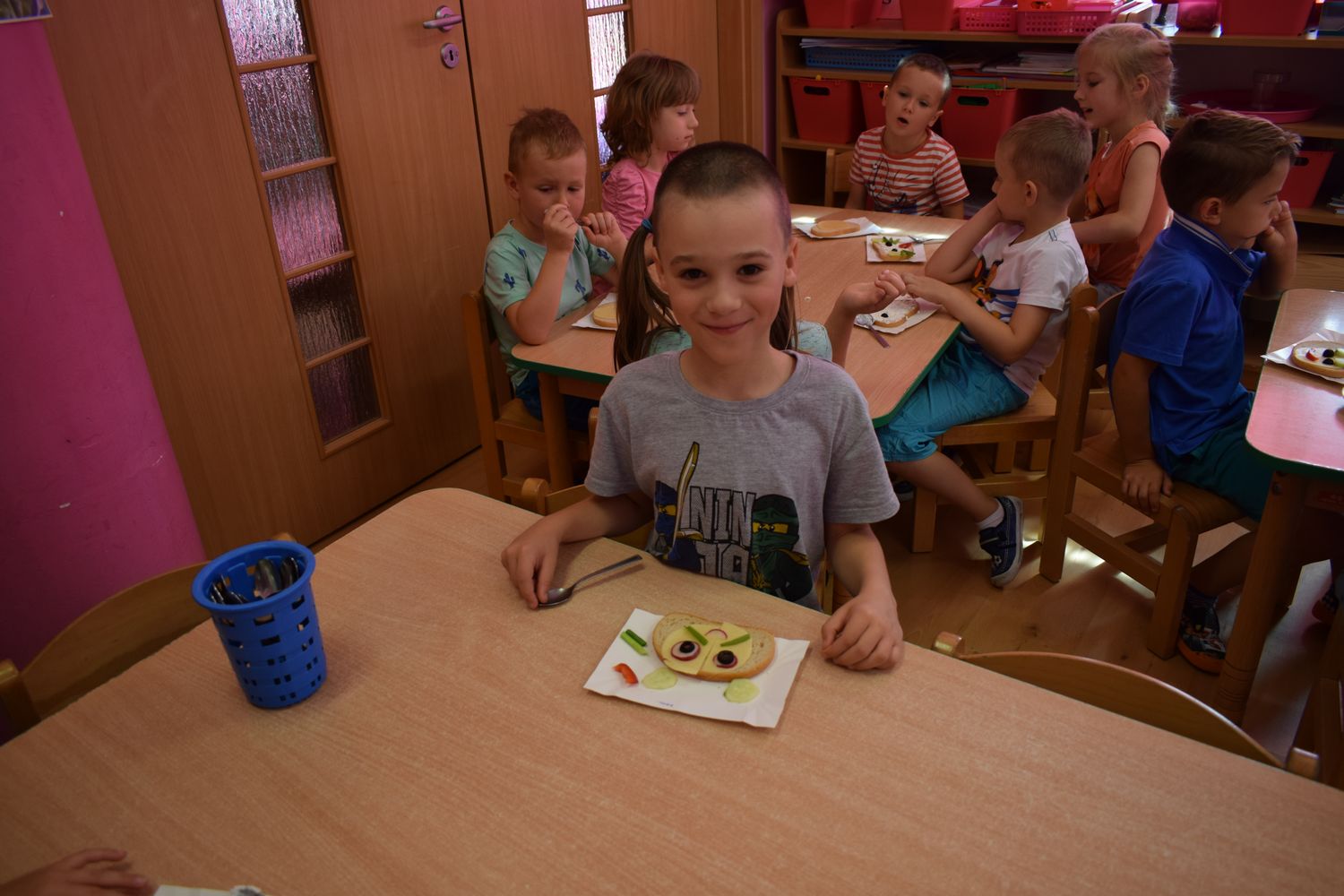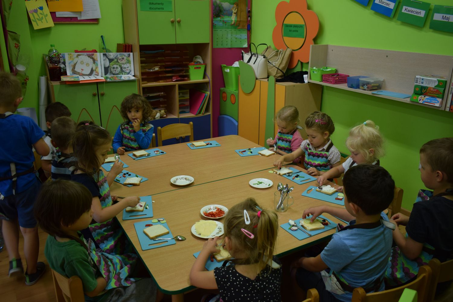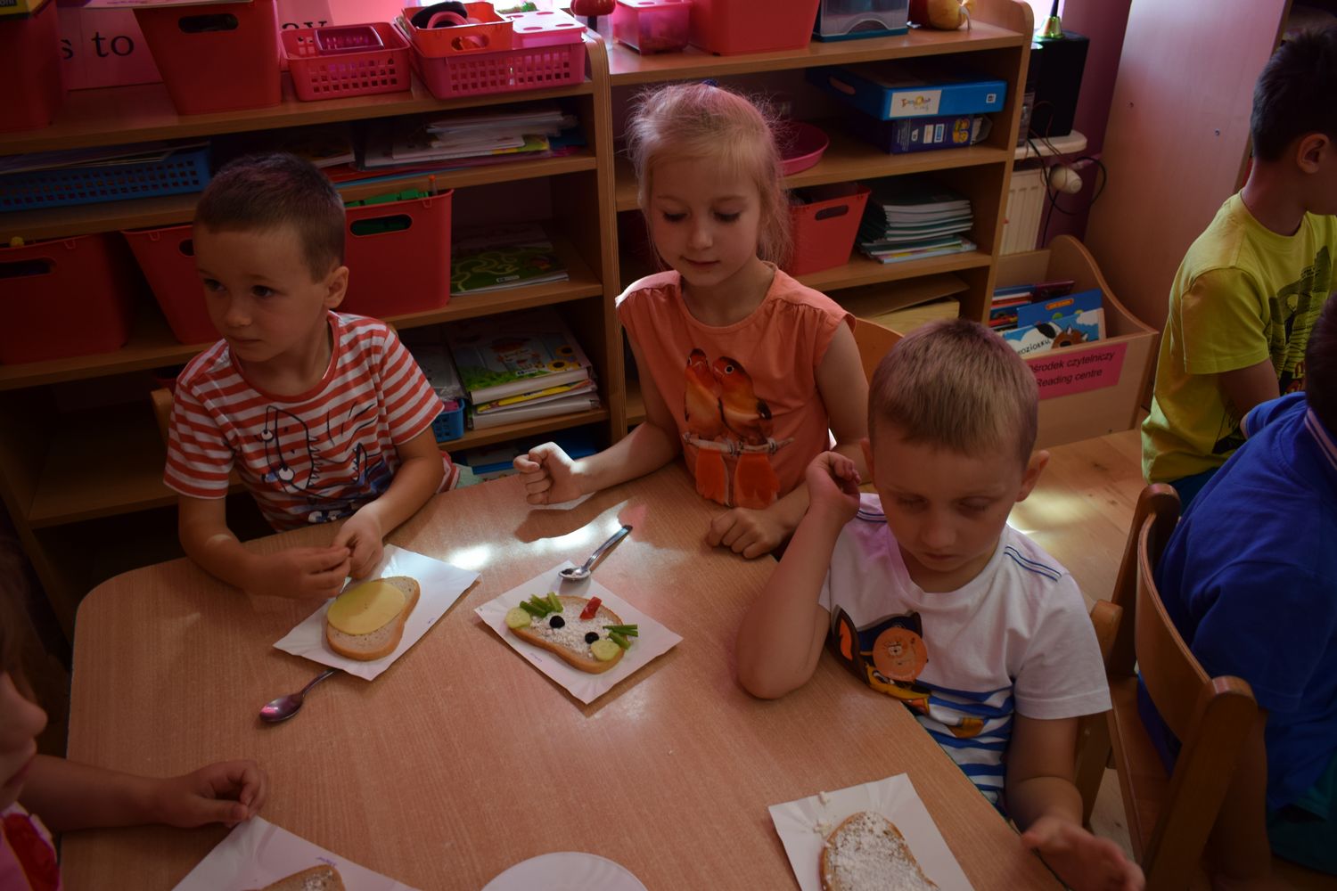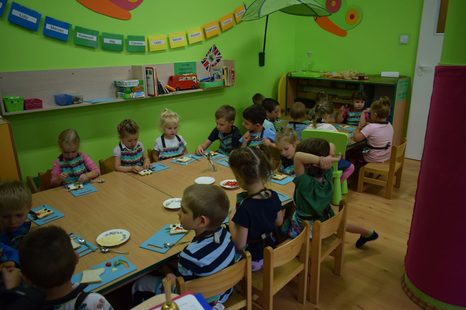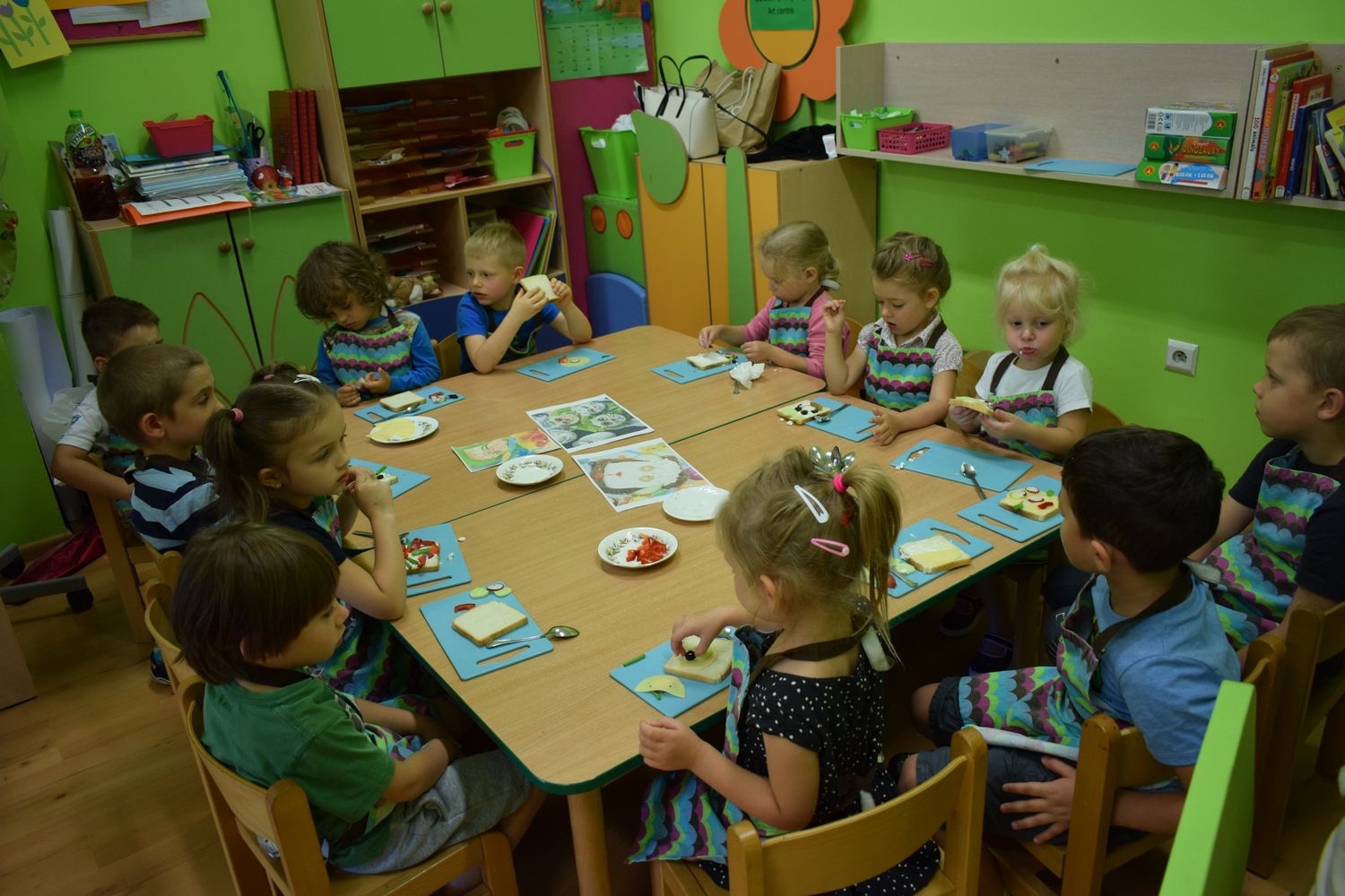 Na zaję­ciach z kuch­ci­kowa przed­szko­laki robiły kanap­kowe zwie­rzaki z twa­rożku i kolo­ro­wych warzyw.