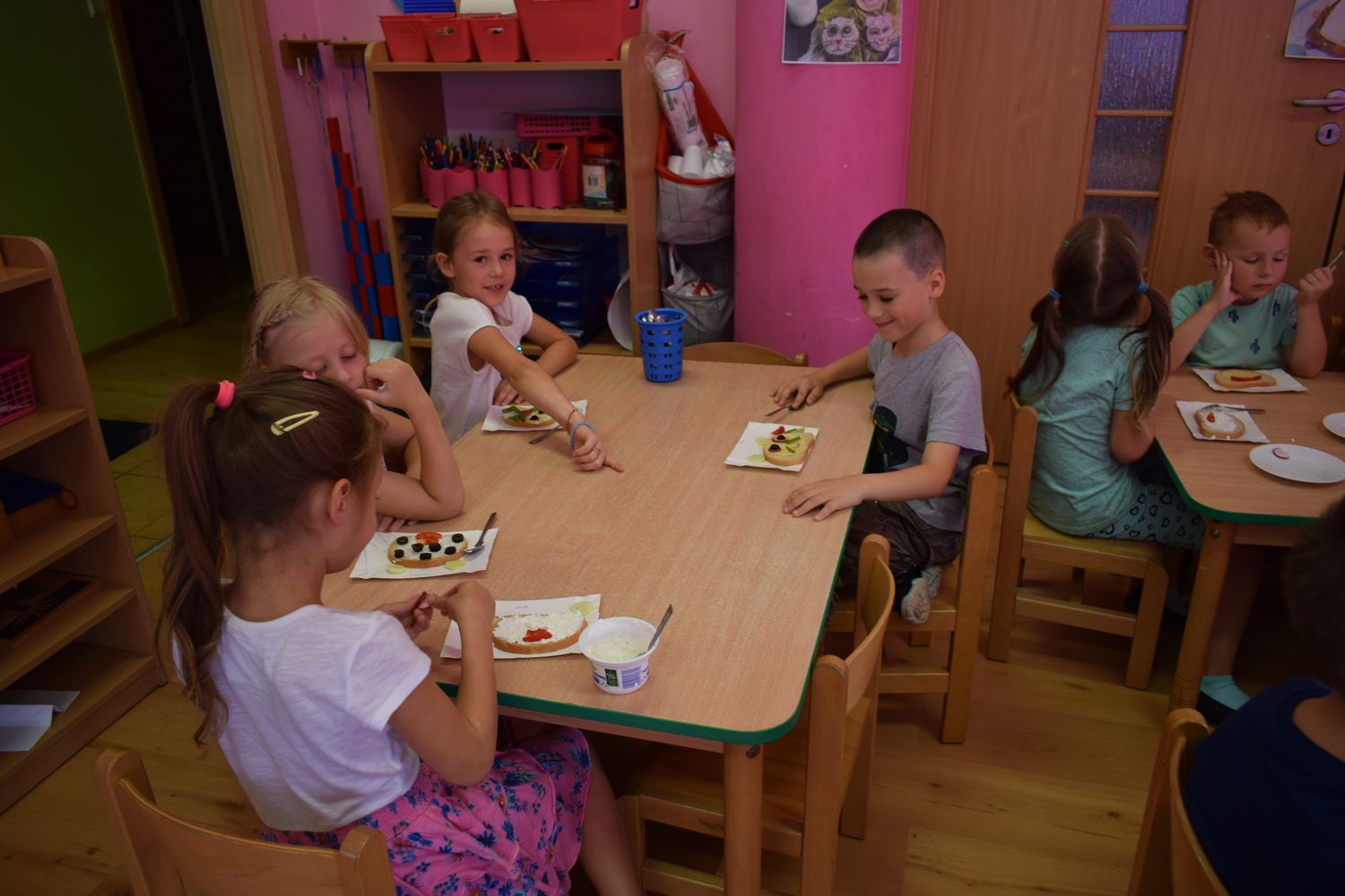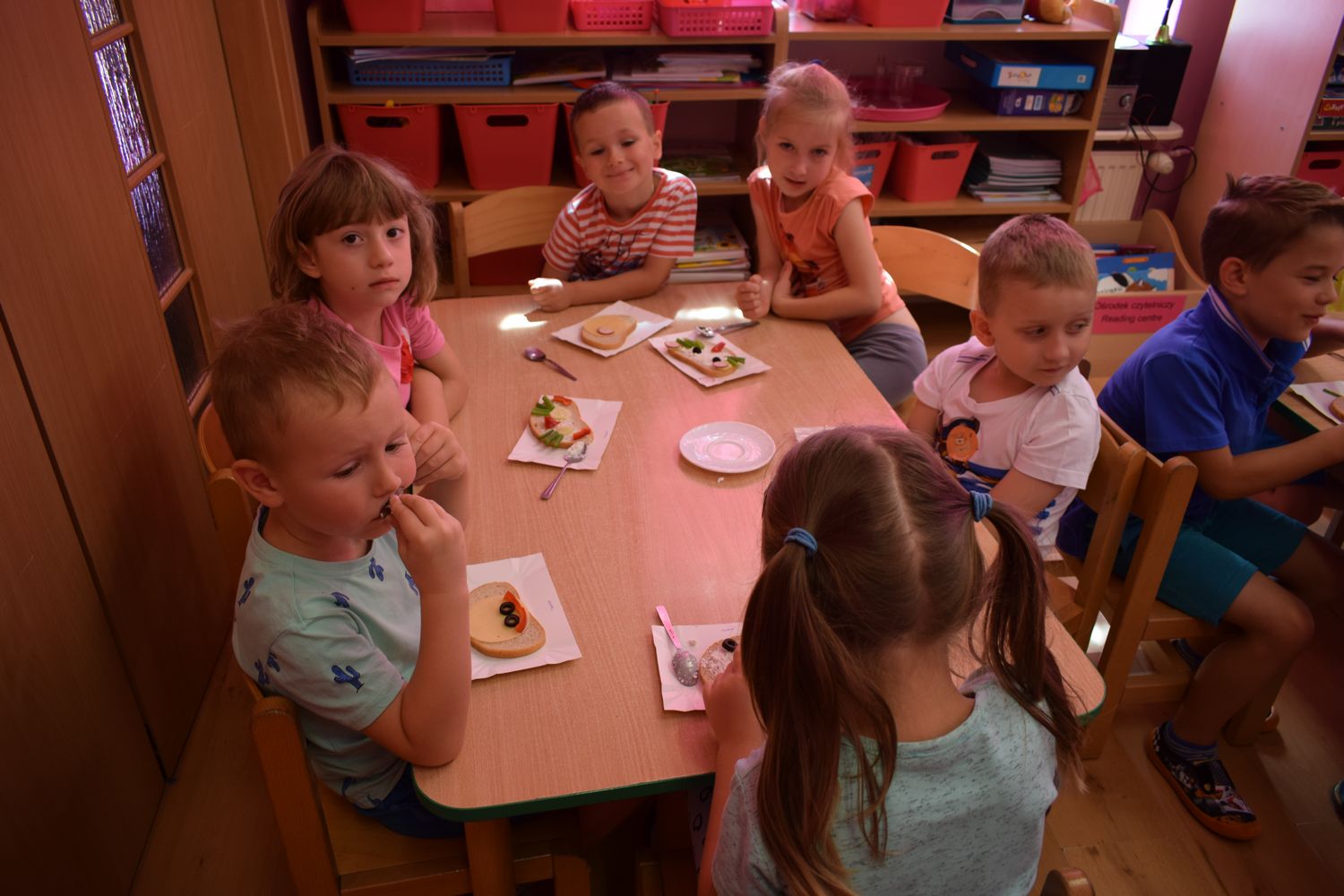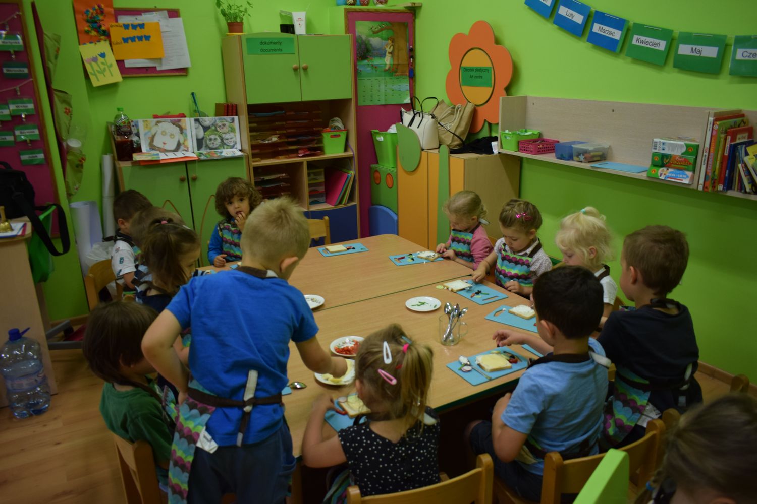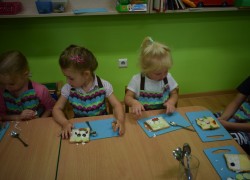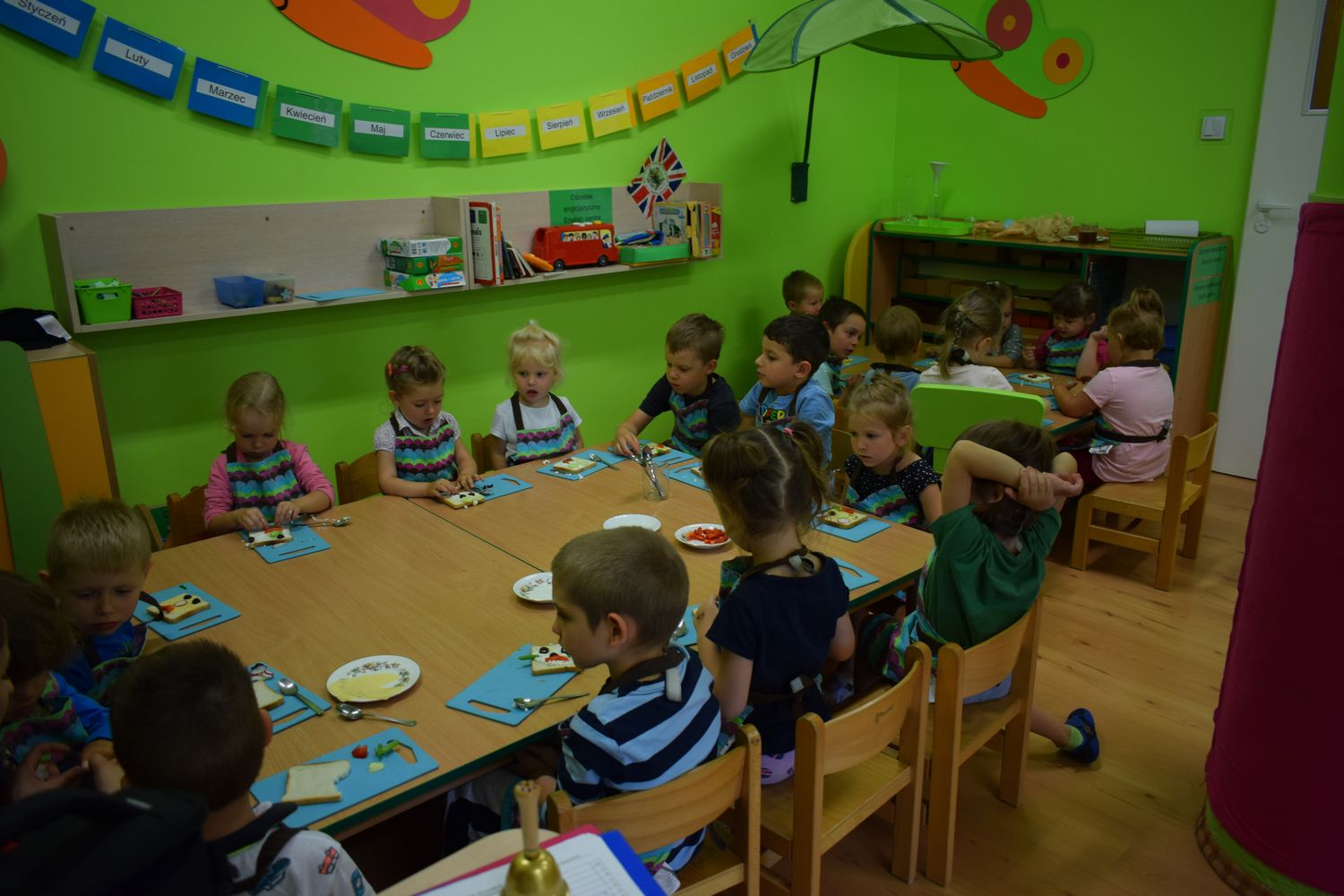 Na zaję­ciach z kuch­ci­kowa przed­szko­laki robiły kanap­kowe zwie­rzaki z twa­rożku i kolo­ro­wych warzyw.
