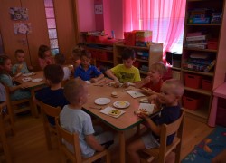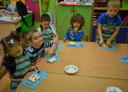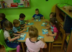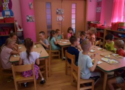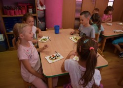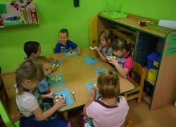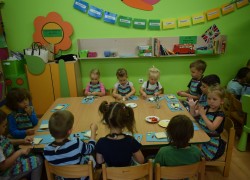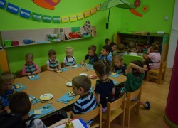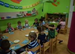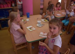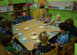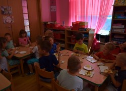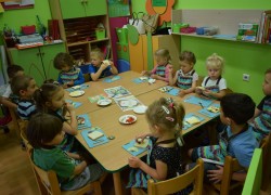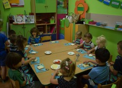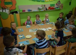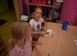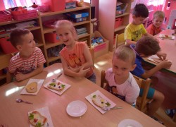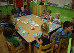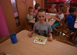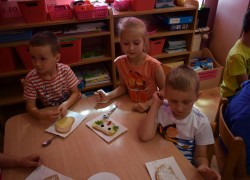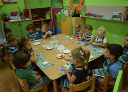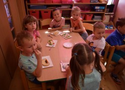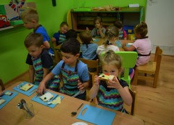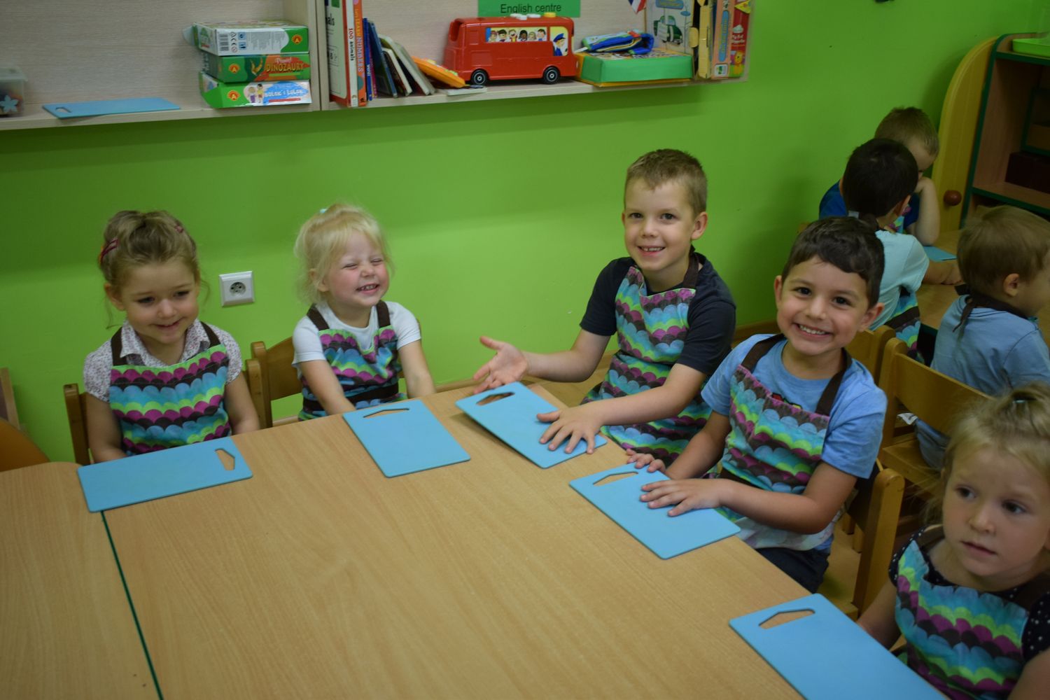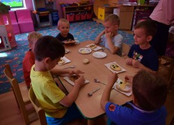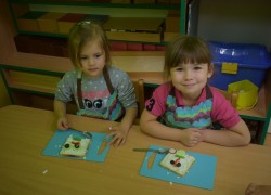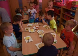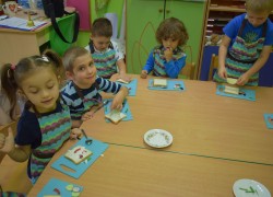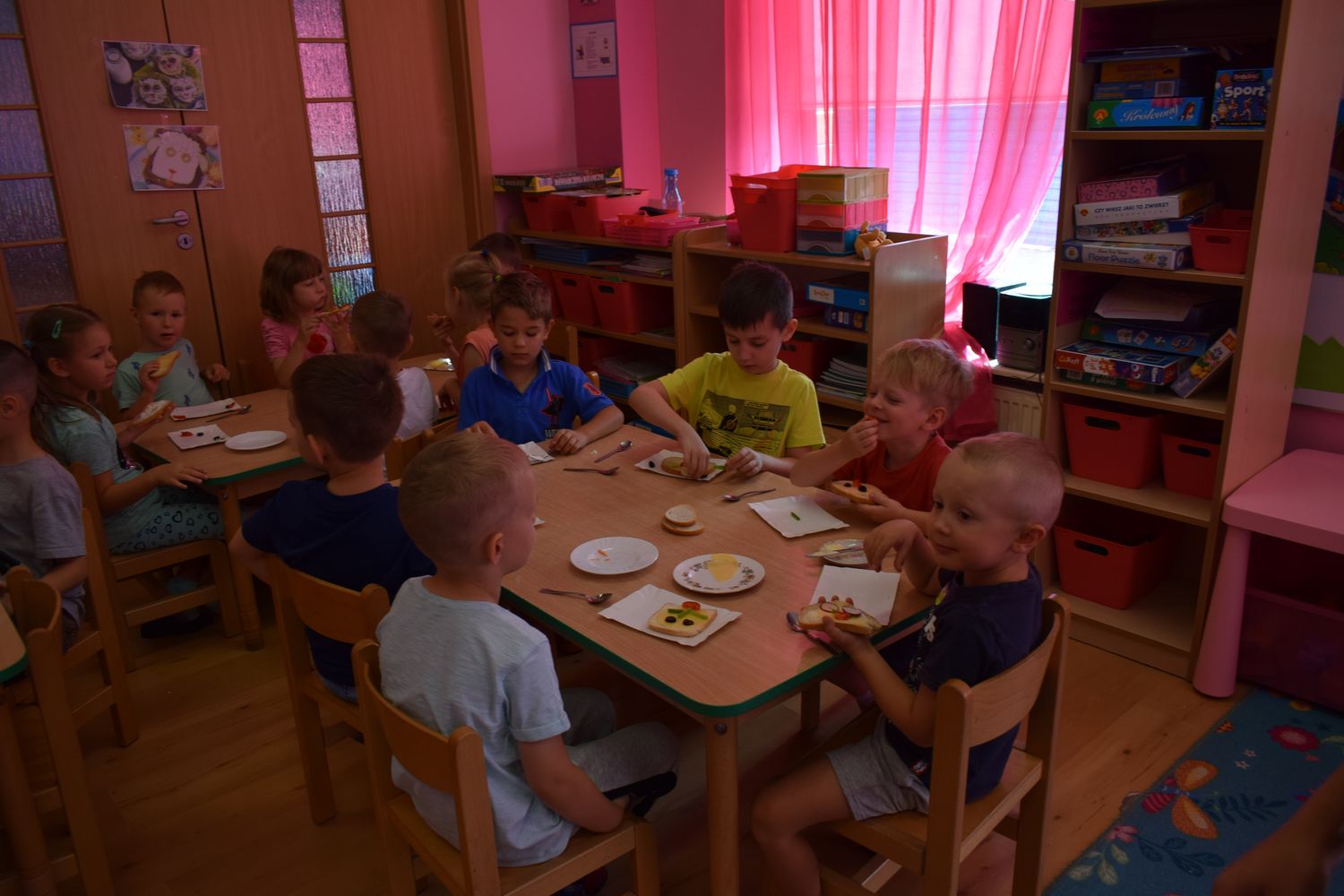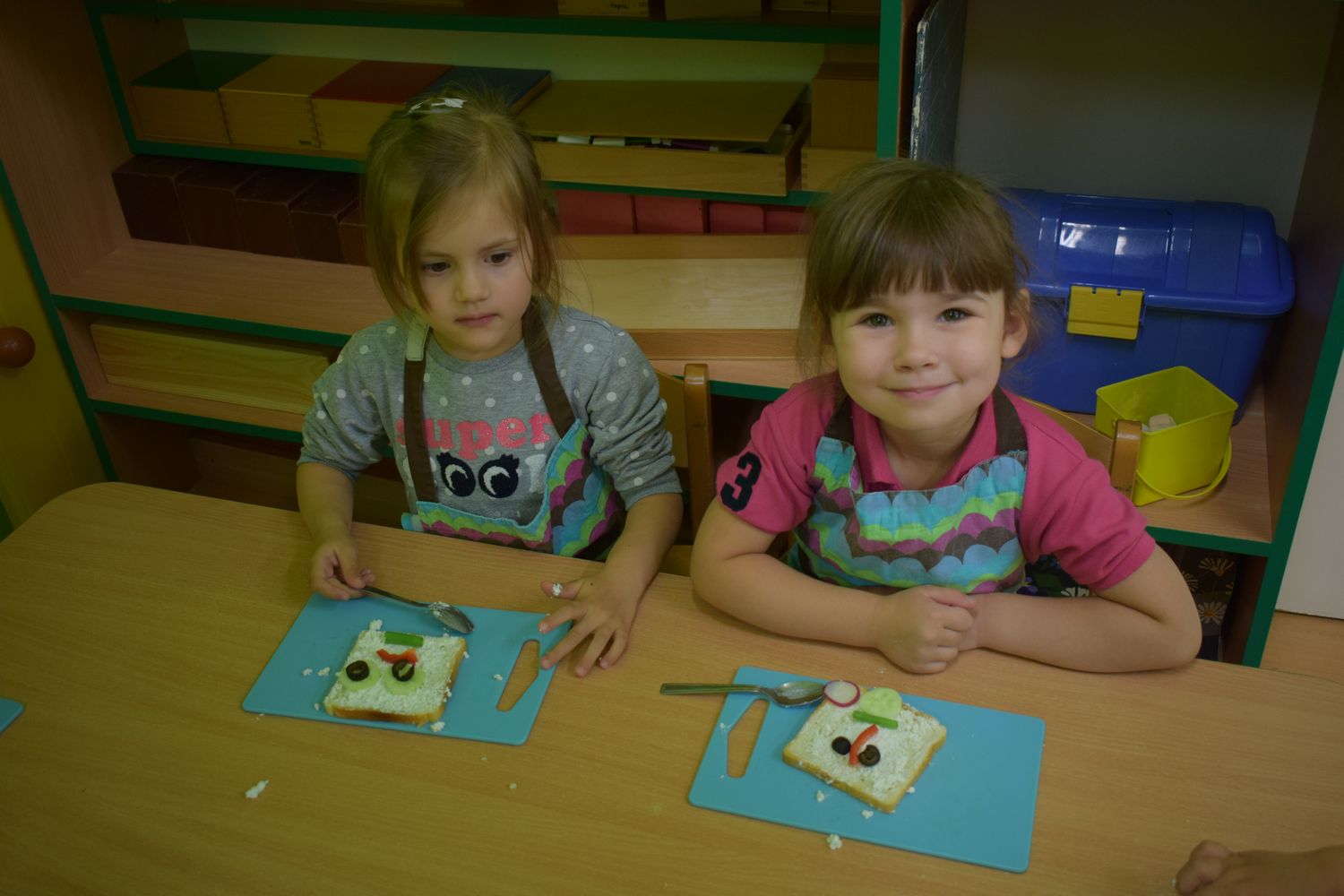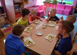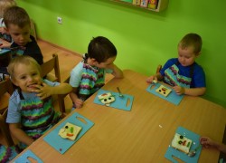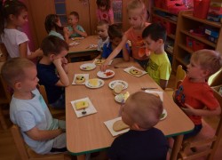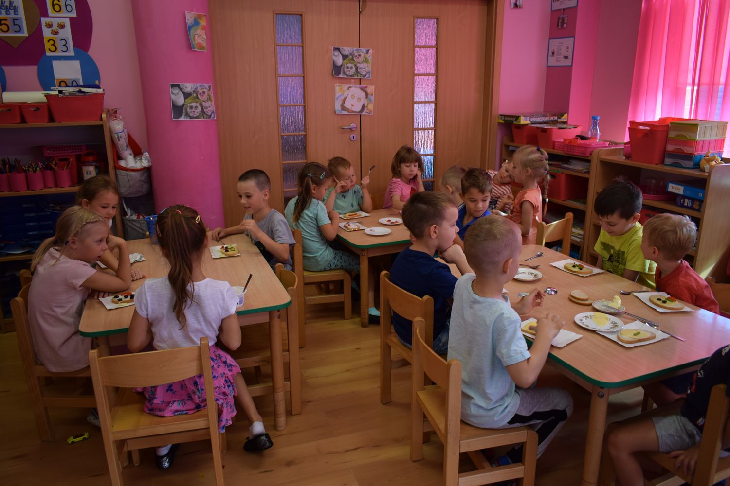 Na zaję­ciach z kuch­ci­kowa przed­szko­laki robiły kanap­kowe zwie­rzaki z twa­rożku i kolo­ro­wych warzyw.