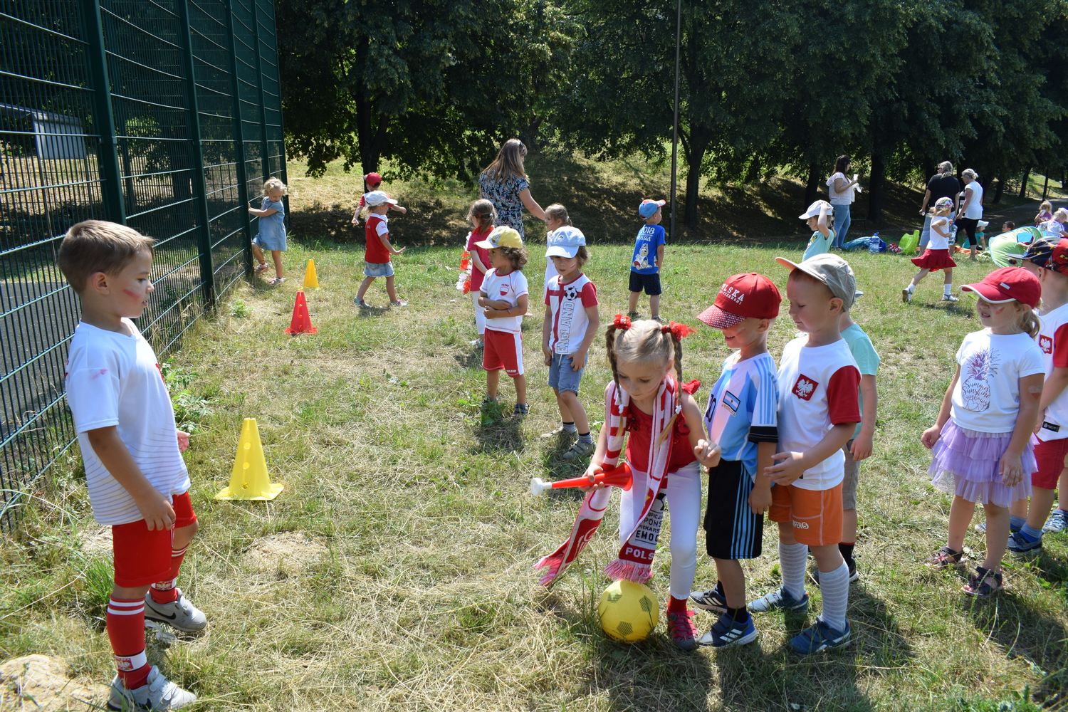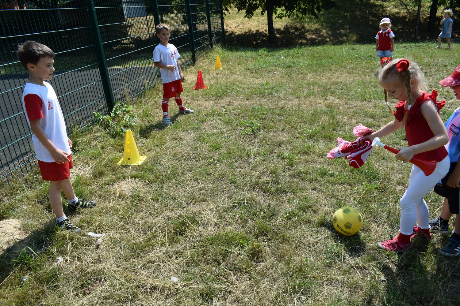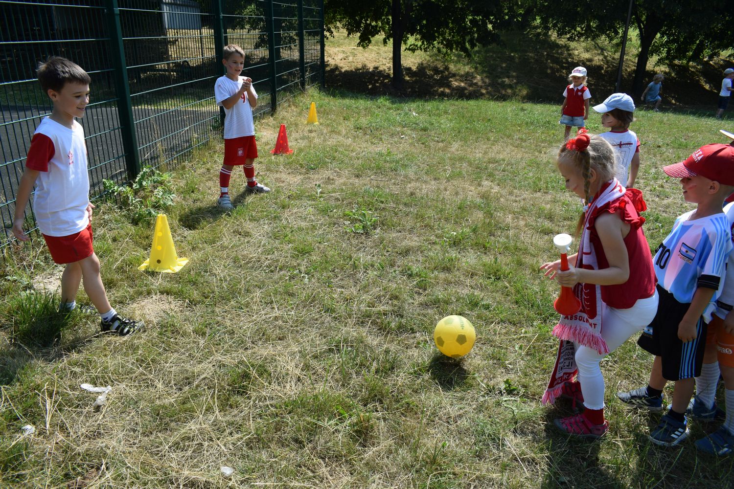W związku ze zbliżającymi się Mistrzostwami dzieci z grupy IV przebrały się w stroje kibica i przyniosły rekwizyty niezbędne do kibicowania naszej drużynie. Omówiliśmy zasady gry w piłkę nożną. Udaliśmy się tego dnia do wąwozu, gdzie wspólnie graliśmy w piłkę i kibicowaliśmy.