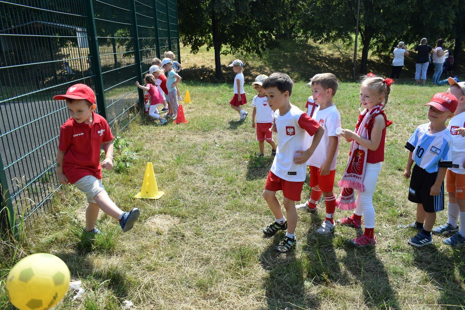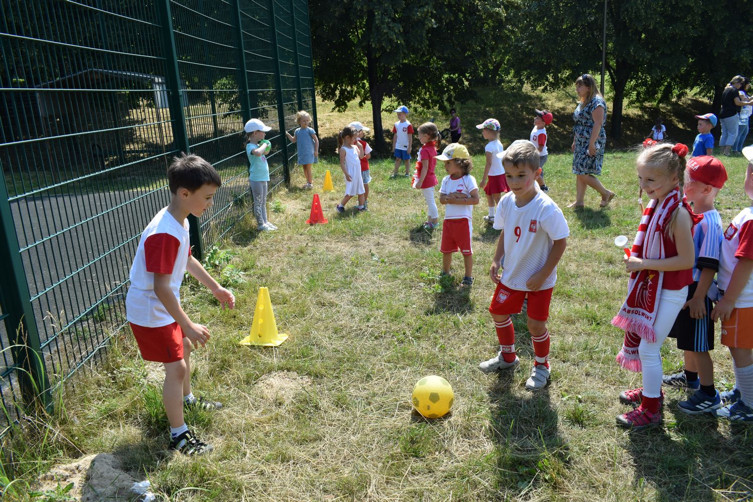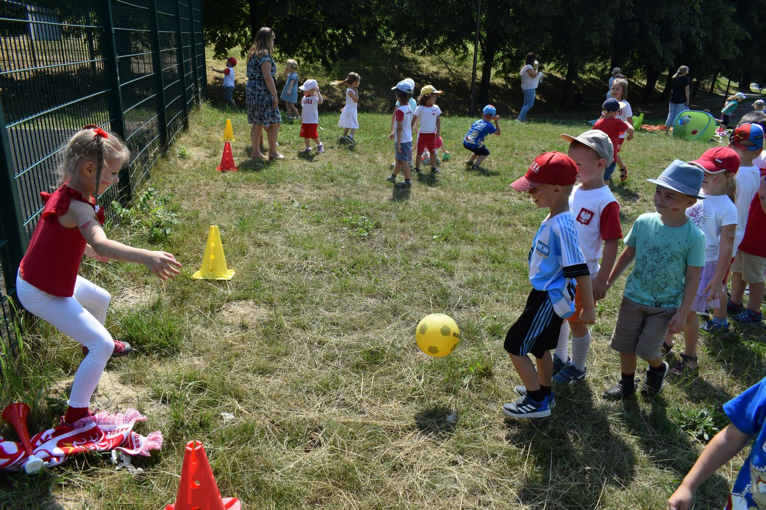 W związku ze zbliżającymi się Mistrzostwami dzieci z grupy IV przebrały się w stroje kibica i przyniosły rekwizyty niezbędne do kibicowania naszej drużynie. Omówiliśmy zasady gry w piłkę nożną. Udaliśmy się tego dnia do wąwozu, gdzie wspólnie graliśmy w piłkę i kibicowaliśmy.
