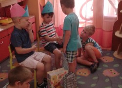 Tuż przed roz­po­czę­ciem waka­cji grupa III świę­to­wała uro­dziny Leona i imie­niny Piotrka.