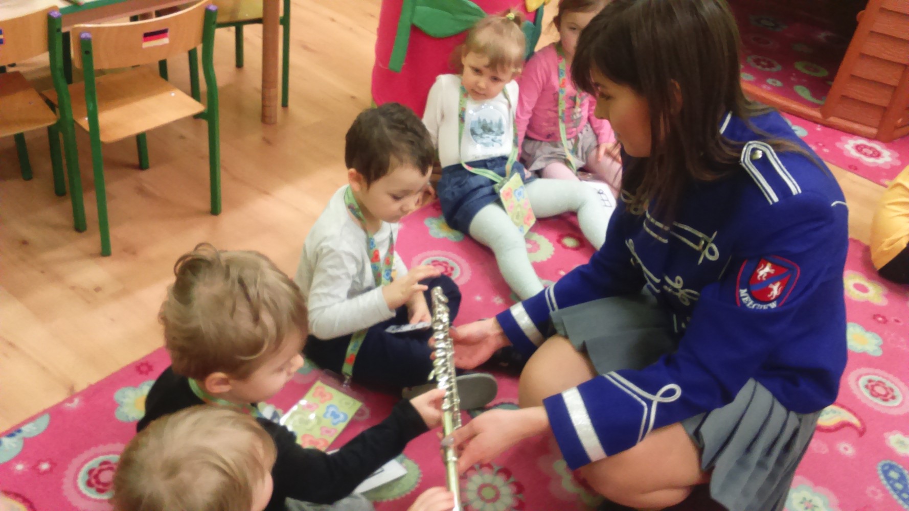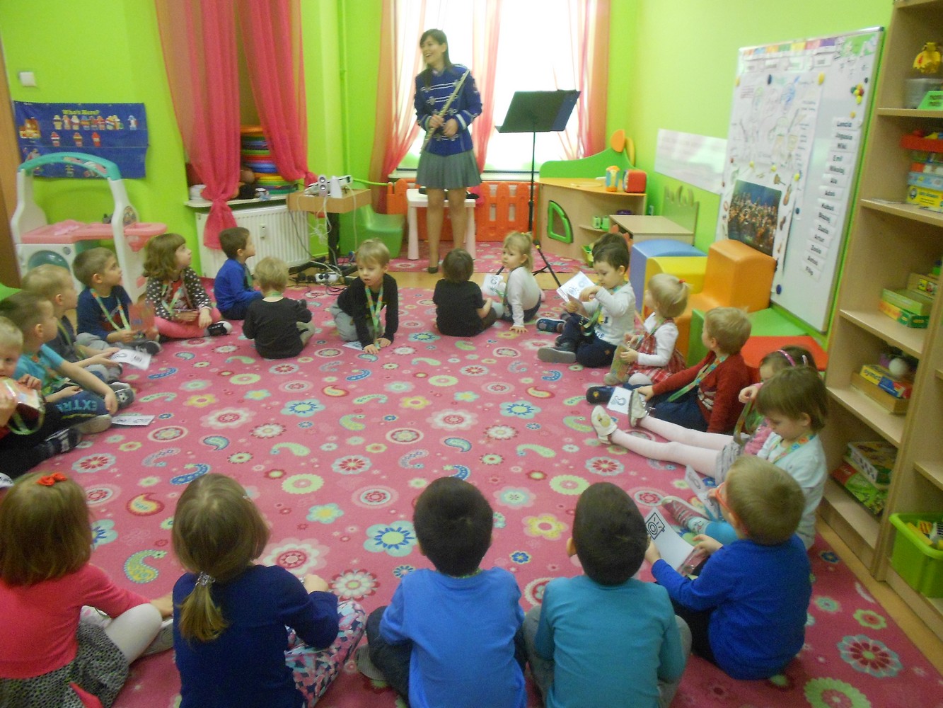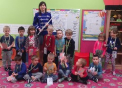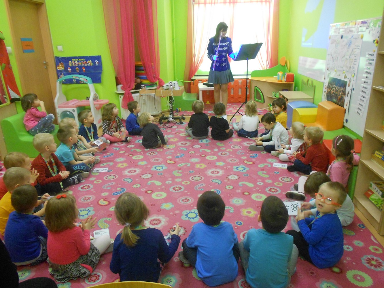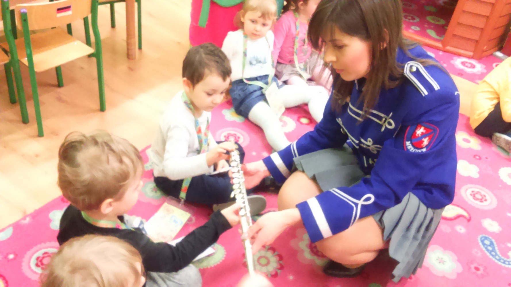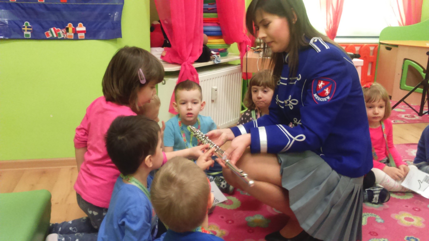 W związku z realizacją tematu tygodnia „Muzyka i sztuka” dzieci z grupy III i II spotkały się z ekspertem od muzyki. Pani Dagmara, która gra w orkiestrze, zapoznała dzieci z budową fletu poprzecznego, jego wyglądem, dźwiękami i zagrała dzieciom kilka utworów muzycznych na tym instrumencie.