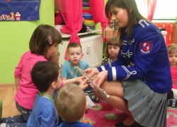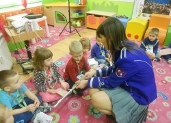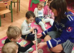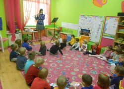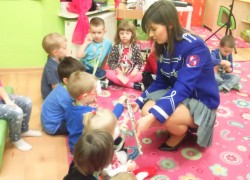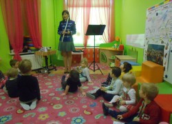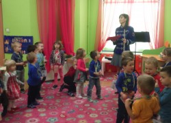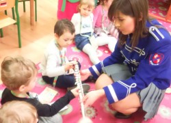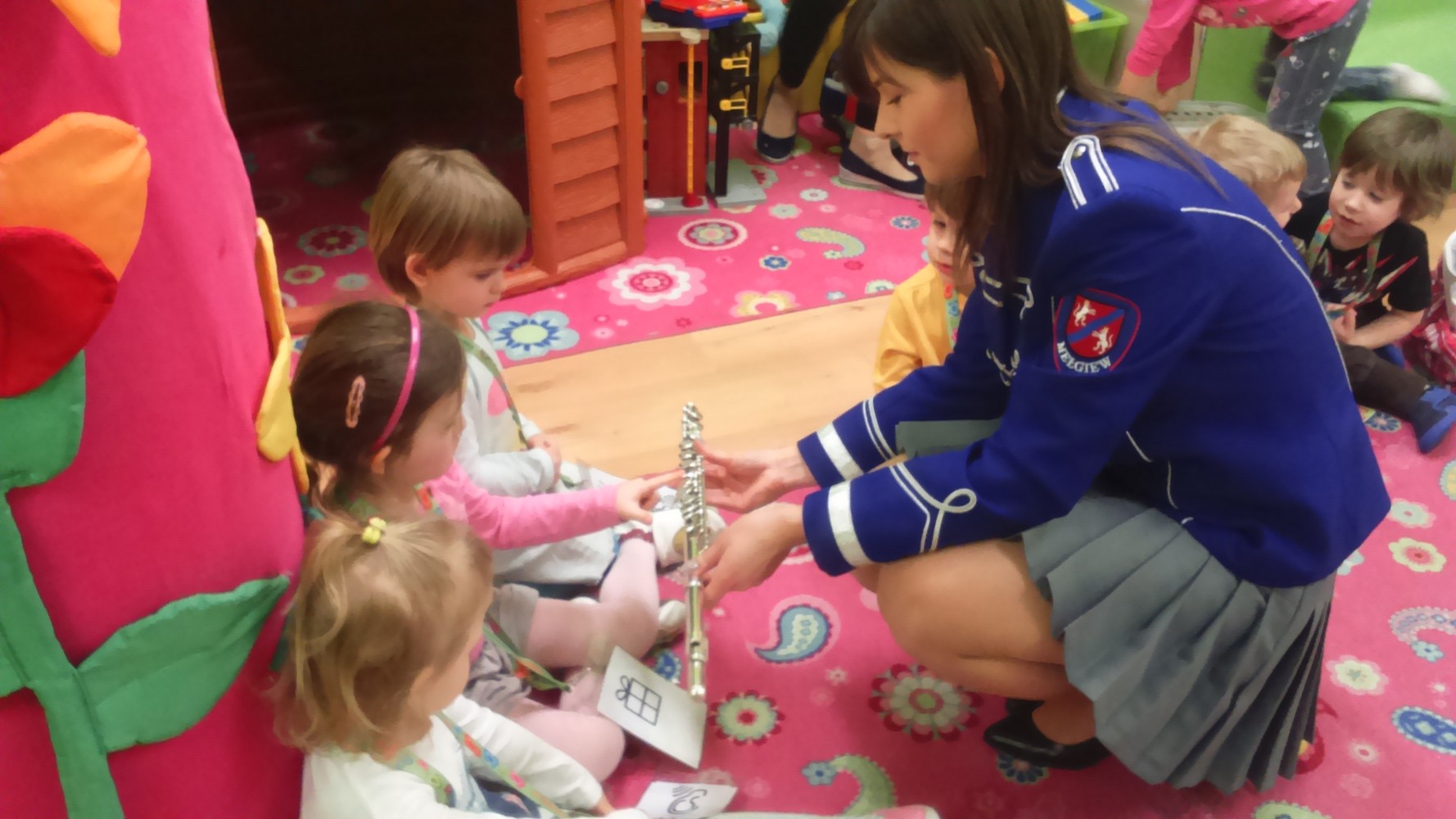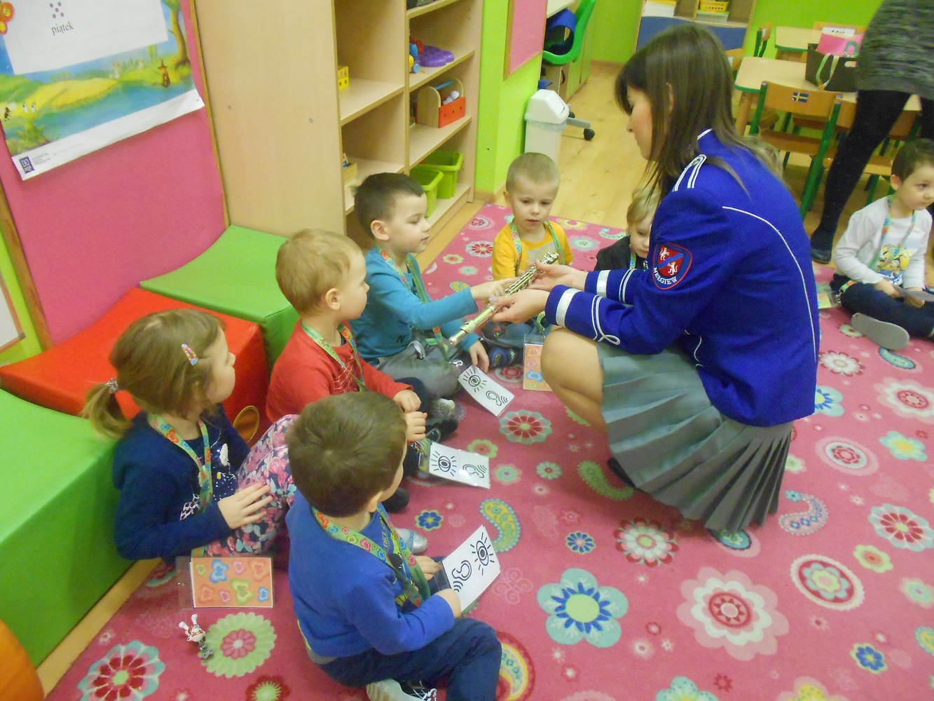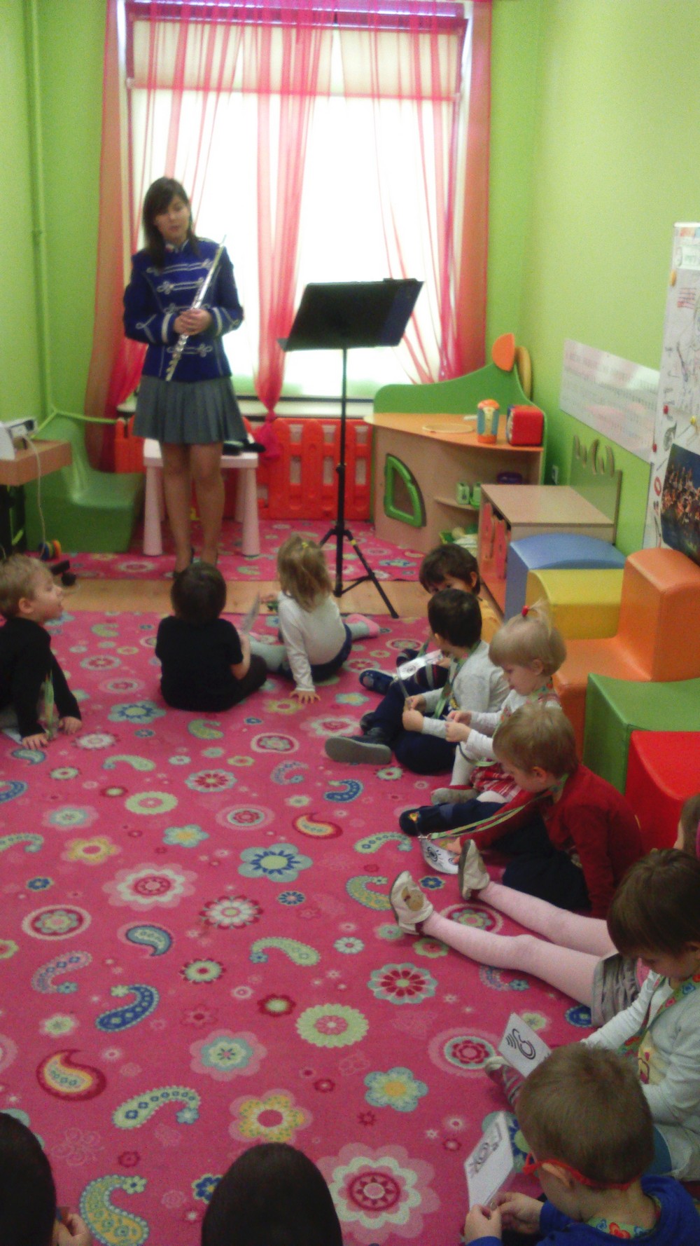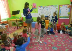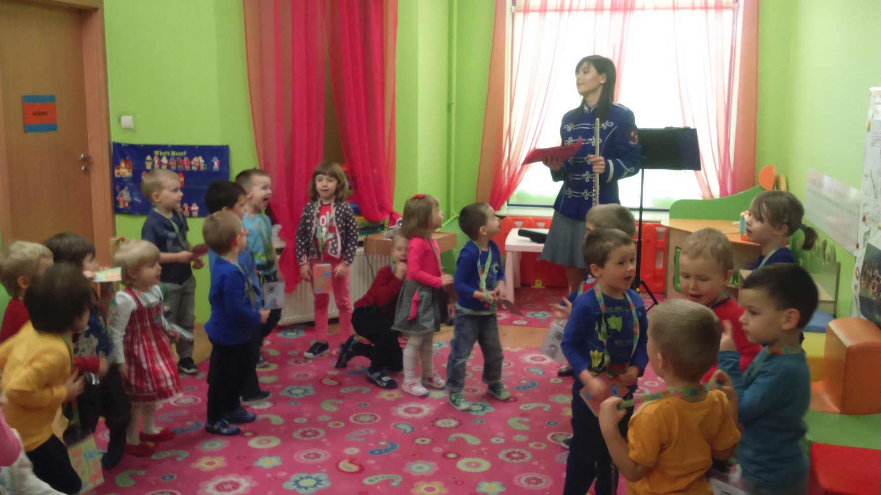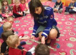 W związku z realizacją tematu tygodnia „Muzyka i sztuka” dzieci z grupy III i II spotkały się z ekspertem od muzyki. Pani Dagmara, która gra w orkiestrze, zapoznała dzieci z budową fletu poprzecznego, jego wyglądem, dźwiękami i zagrała dzieciom kilka utworów muzycznych na tym instrumencie.